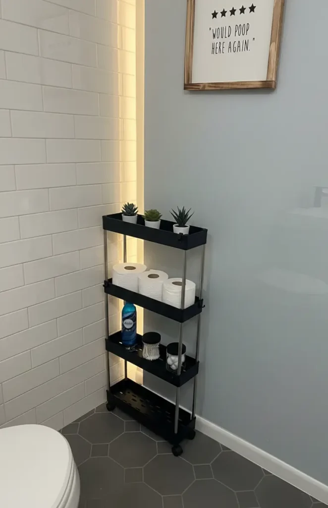The Real Benefit: Here’s where this cart really shines. You can slide it into that narrow gap when you’re not using it, keeping everything tucked away and looking neat. When you need something? Just pull it out. No awkward reaching or squeezing your hand into tight spaces. This is particularly clutch in bathrooms where you want easy access to everything without it being on display.